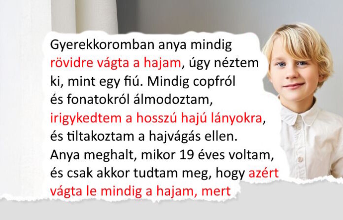 • Gyerekkoromban anya mindig rövidre vágta a hajam, úgy néztem ki, mint egy fiú. Mindig copfról és fonatokról álmodoztam, irigykedtem a hosszú hajú lányokra, és tiltakoztam a hajvágás ellen. Anya meghalt, mikor 19 éves voltam, és csak akkor tudtam meg, hogy azért vágta le mindig a hajam, mert a füleimet tőle örököltem, és őt sokat csúfolták emiatt gyerekkorában.