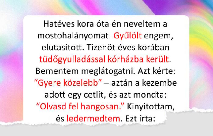 - 5 éves kora óta nevelem a mostohafiamat. Az anyja lemondott róla, mégis mindig hiányzott neki. Engem sosem szeretett, sírt, ha a közelébe mentem, és bármit is tettem, elzárkózott tőlem. Most 15 éves. Az egyik évfordulós vacsorán látszott rajta, hogy nagyon rossz kedve van. Aztán hirtelen felállt, megfogta a mikrofont, és azt hittem, valami botrányos dolog fog következni.