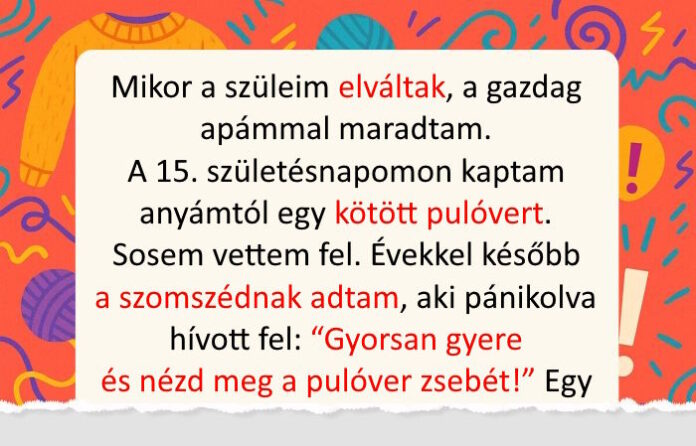 - Mikor a szüleim elváltak, apámmal maradtam, mert jóval gazdagabb volt, mint anyám. Anyával sosem álltunk túl közel egymáshoz. A 15. születésnapomon kaptam tőle egy kötött pulóvert. Megköszöntem és eldugtam a fiókom mélyére, ciki lett volna felvenni.