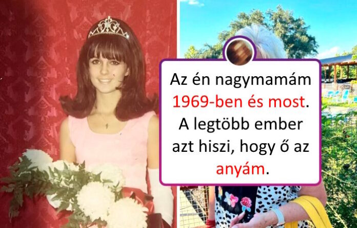12. “Az én gyönyörű nagymamám 1969-ben, 16 évesen és 2024-ben, 71 évesen. Középiskolában megnyert mindent, szépségkirálynő, Valentin-napi királynő is volt. Őszintén szólva, a legtöbb ember azt hiszi, hogy ő az anyám! Nagyon szépen öregedett meg.”