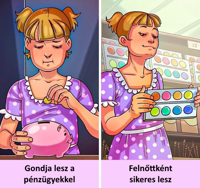 - Janka anyukája gyakran csak legyintett, mikor Janka valami új holmit kért. Azt mondta, nincs rá szükségük vagy már van nekik ilyen. Az évek során Janka leszokott arról, hogy bármit is kérjen. Mikor saját keresete lett, elkezdte szórni a pénzét mindenféle szükségtelen holmira, hogy kompenzálja az érzést, hogy sosem kapta meg, amire vágyott. Most azt tanulja, hogyan egyensúlyozzon a szükségletek és a vágyai között.