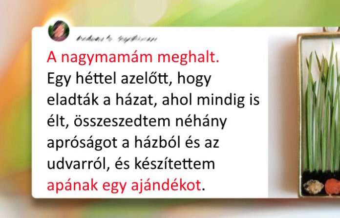 - A nagymamám februárban halt meg. Egy héttel azelőtt, hogy eladták a házat, ahol mindig is élt, összeszedtem néhány apróságot a házból és az udvarról. Ebből készítettem el apák napjára az ajándékot. Így egy kis darabot megőrizhettünk belőle, és otthon örökre velünk marad. © TheCuteMess / Reddit