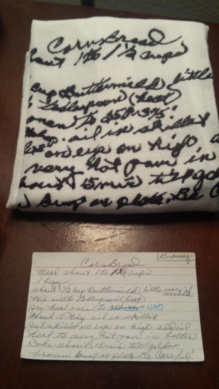 - A nagymamám nemrég hunyt el, és szerettem volna valami különlegeset ajándékozni anyának anyák napjára. Lemásoltam a nagyi kézírását egy régi receptjéről, és rányomtattam egy konyharuhára. © b**tacos63 / Reddit