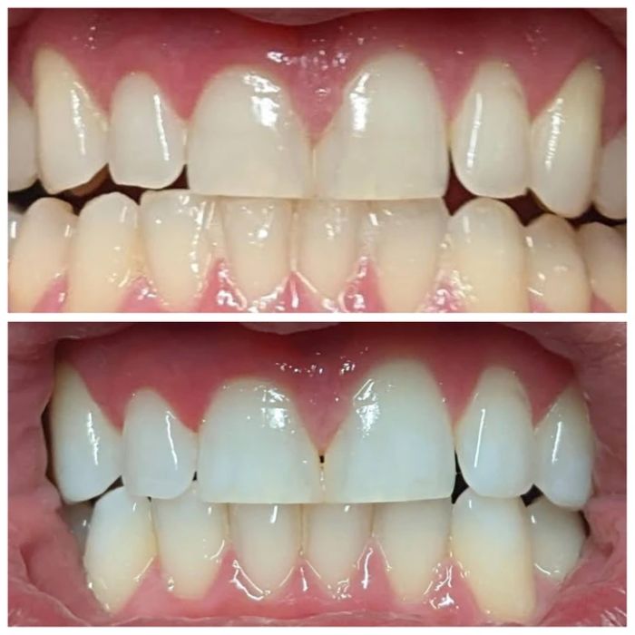 13. “Egy doboz fogfehérítő csík előtt és után.”