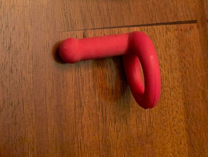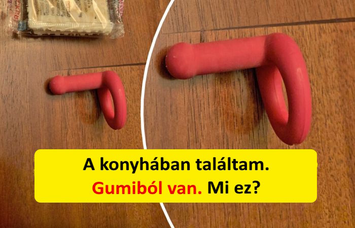 7. “A konyhai fiókban találtam. Kb. 7 cm hosszú, gumiból van és belül valami kemény anyag van.”