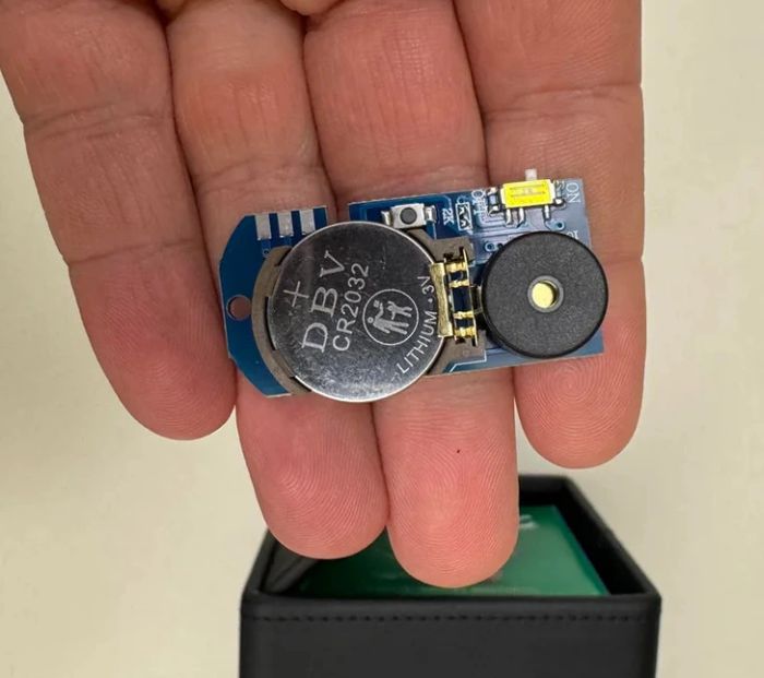 9. “A munkahelyemen, a zsebkendős dobozba rejtve találtam. Van rajta egy elem és egy olyasmi, ami hangszórónak tűnik. Furcsa csipogást hallottam és ezt találtam. Van rajta ki-bekapcsoló gomb, akkor csipog, ha megnyomom.”