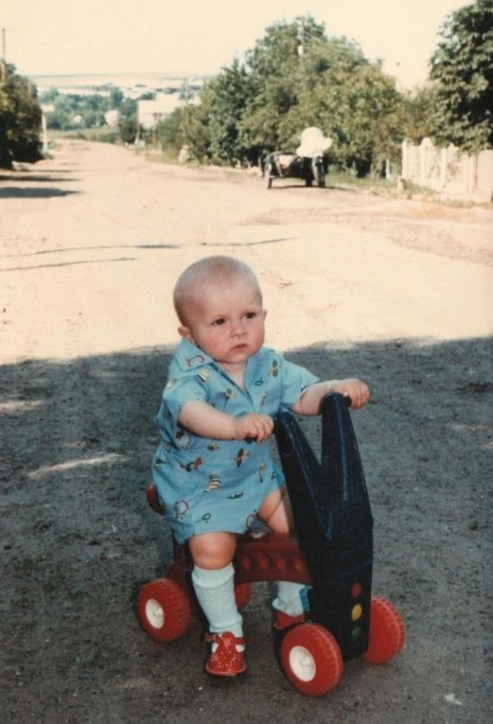 8. “Én 28 évvel ezelőtt. Még anya kicsi fia vagyok, aki nem tapasztalta az életet, máris az első járművemen ülök. Apa motorja a háttérben. Még egy éves sem voltam.”