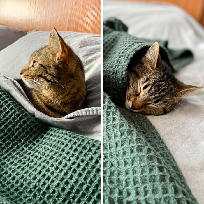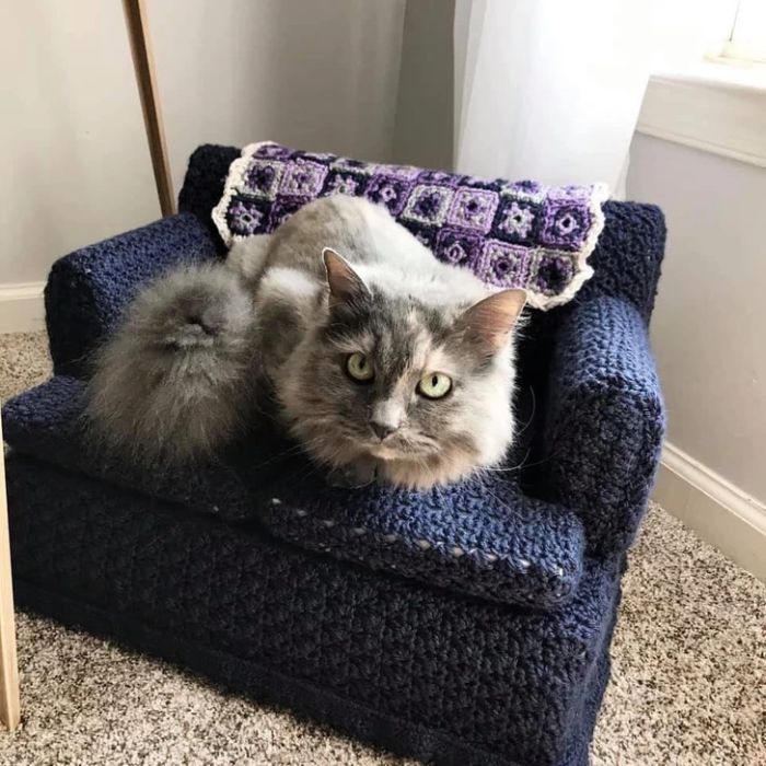 10. “Az anyósom ezt a cuki kanapét és hozzá a kis takarót készítette a cicájának!”