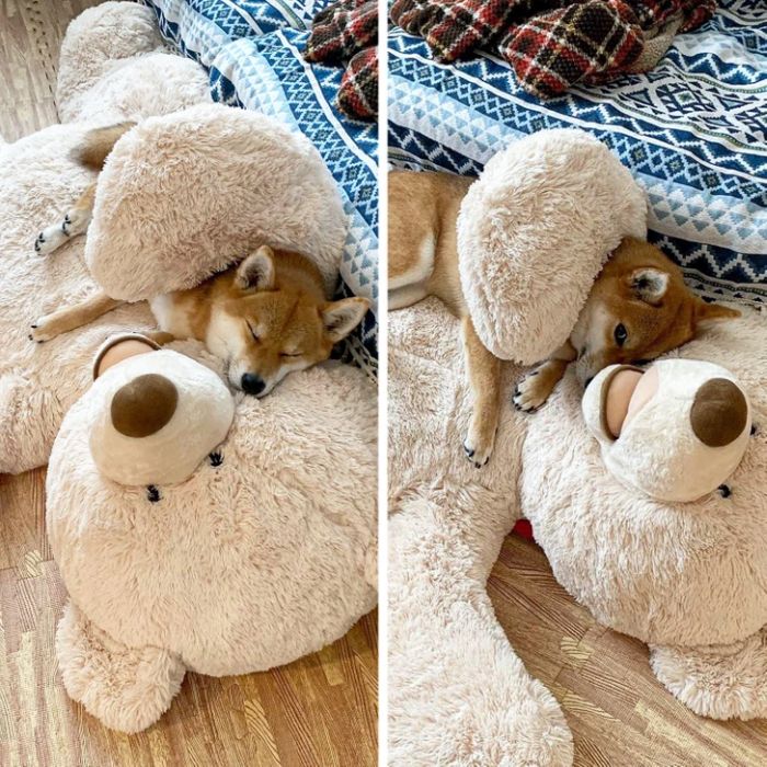 9. Néha a kutyád boldogságához csak egy hatalmas mackó kell!