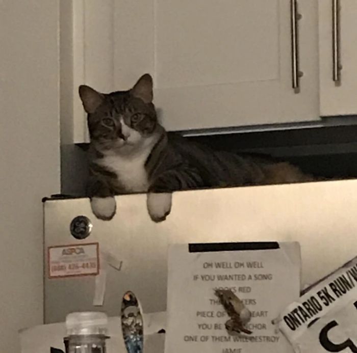 5. “A macskám mancsai pontosan egy vonalban vannak a hűtő tetejével.”