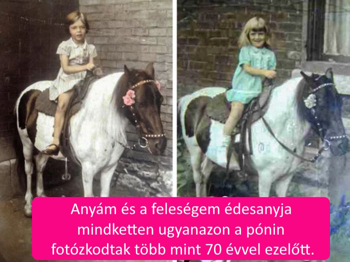 1. “Anyám és a feleségem édesanyja mindketten ugyanazon a pónin fotózkodtak több mint 70 évvel ezelőtt Montrealban.”