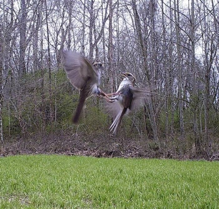 9. “A vadkamera elkapta azt a pillanatot, mikor a két madár találkozott a levegőben.”
