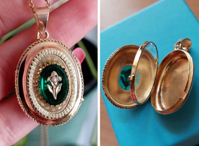 “A nagymamám medálja. Az egyik felébe fotót lehet tenni, a másikba parfümöt.”