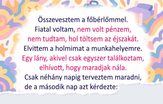 - Egyszer csúnyán összevesztem a főbérlőmmel. Egy hete fizettem ki a lakbért, fiatal voltam, nem volt pénzem új lakást kibérelni. Nem tudtam, hol töltsem az éjszakát. Elvittem a holmimat a munkahelyemre. Nem tudtam, mit tegyek. Egy lány, akivel csak egyszer találkoztam, elhívott, hogy maradjak nála. Csak néhány napig terveztem maradni, de a második nap azt kérdezte: “A többi cuccodat mikor hozod át?” Kiderült, hogy azt akarja, hogy nála lakjak. Most ő az egyik legjobb barátnőm. © _svetochey