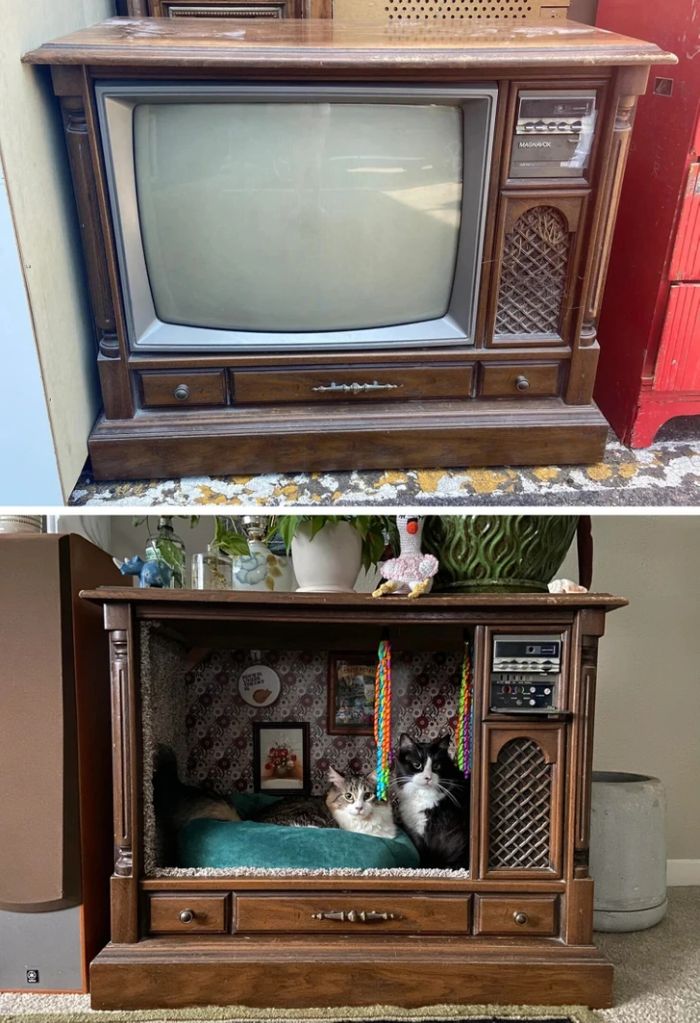 4. “Találtam egy régi tévét a szemétben. A macskáimnak új fekhely lett belőle.”