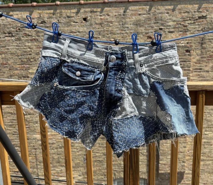 17. “Nem tudtam megjavítani a barátom kiszakadt farmerét, ezért szétvagdostam és sashiko hímzéssel sortot készítettem belőle.”