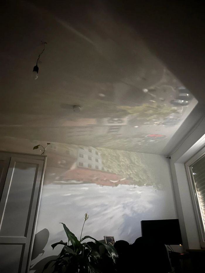 9. “Egy bizonyos órában a napfény a város látképét tükrözi a falra a redőnyön lévő lyukon keresztül.”