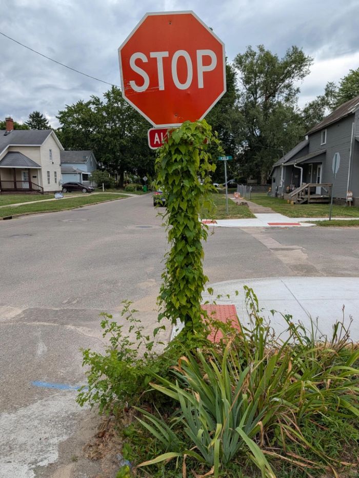 16. “Ezt a stop táblát birtokba vette a természet.”