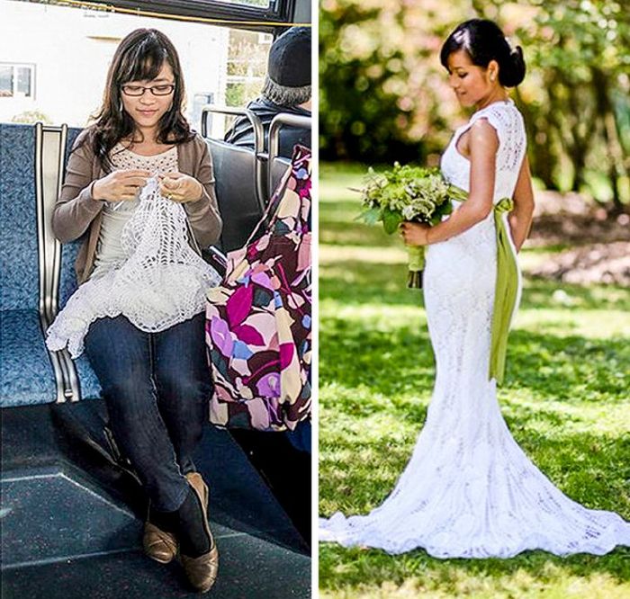 11. “Munkába tartva, a buszon horgoltam a menyasszonyi csipkeruhámat. 5 hónap alatt lett kész, és kevesebb mint 30 dollárba került ez a csoda.”