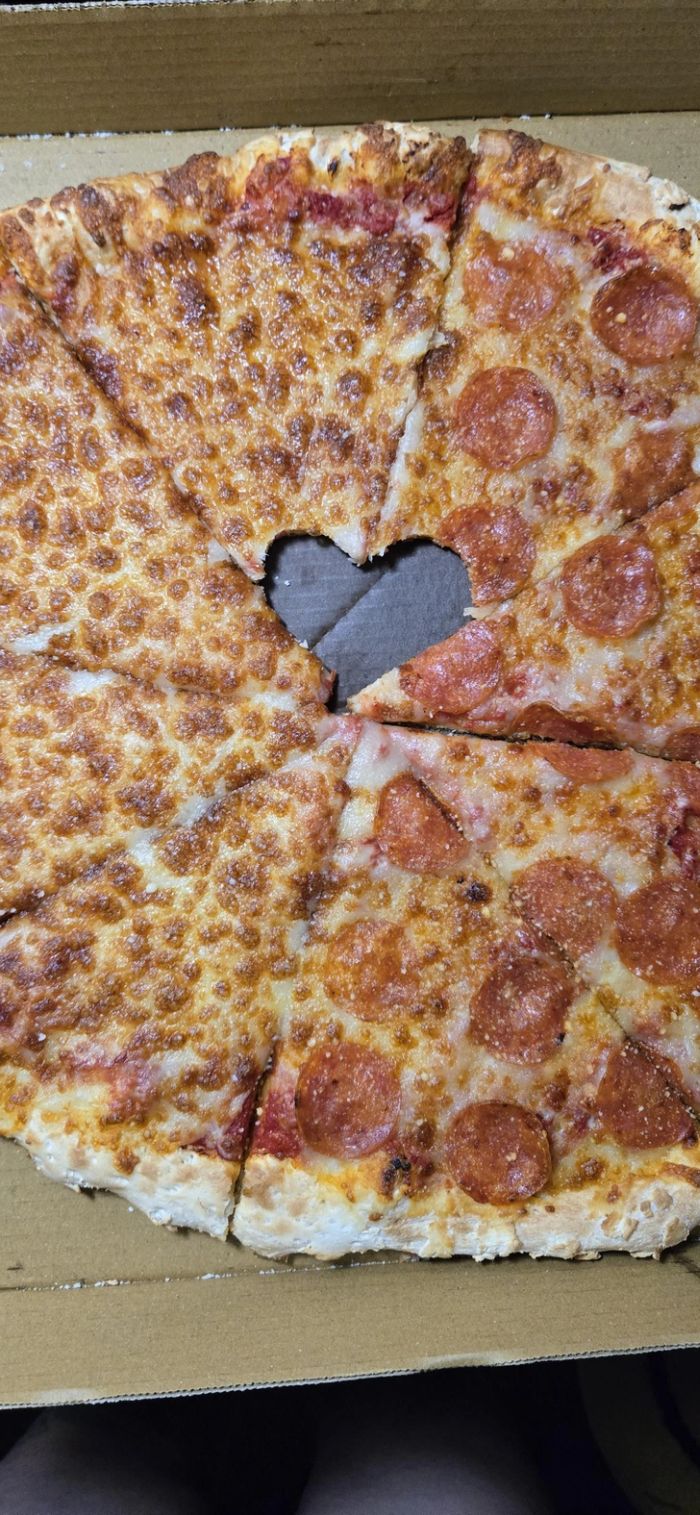 7. “A férjemmel mindketten beleharaptunk a pizzába, mielőtt hazaértünk volna, és véletlenül pont szív alakja lett.”