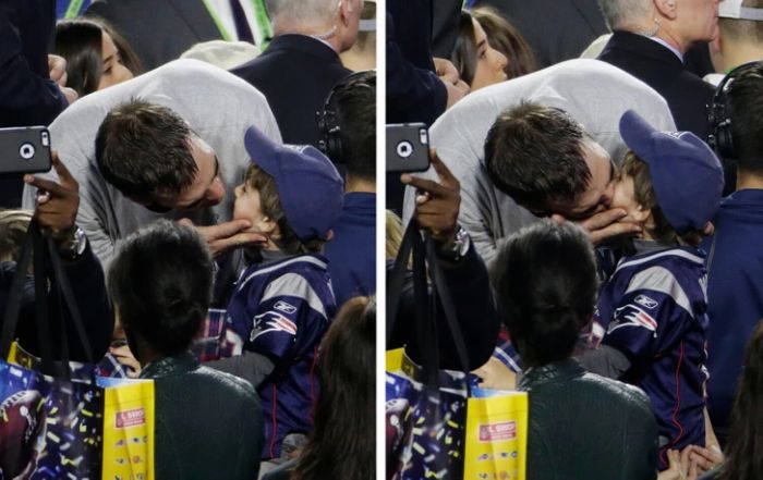 “Ez csak egy puszi volt” – mondta az amerikaifutball-játékos szupersztár, mikor a 11 éves fia, Jack gyors puszit adott a szájára. Ezután felszólította Jack, hogy puszilja meg még egy kicsit tovább. A fiú – látszólag bosszúsan – az ingével megtörölte a száját, majd elment. Ez a jelenet egy Brady életéről szóló dokumentumfilmben (a 10. perctől) látható, és nagy felbolydulást okozott interneten. Sokan úgy gondolják, a Super Bowl-győztesnek nem kellett volna még egy puszit kérnie a fiától.